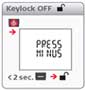 • 同时按加/减键,可选择更高精度,更高显示单位为0.1mm;同时按住"clear/off"键和"-"键,可锁定或者解锁键盘。