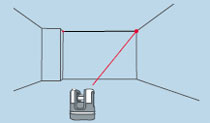 ![]() | 快速平行线放样 首先测量直线上的两个点创建一条轴线,接着输入一个与轴线相平行的线的偏移量。现在无论您点击哪里,红色激光点会移动到平行线上。 |